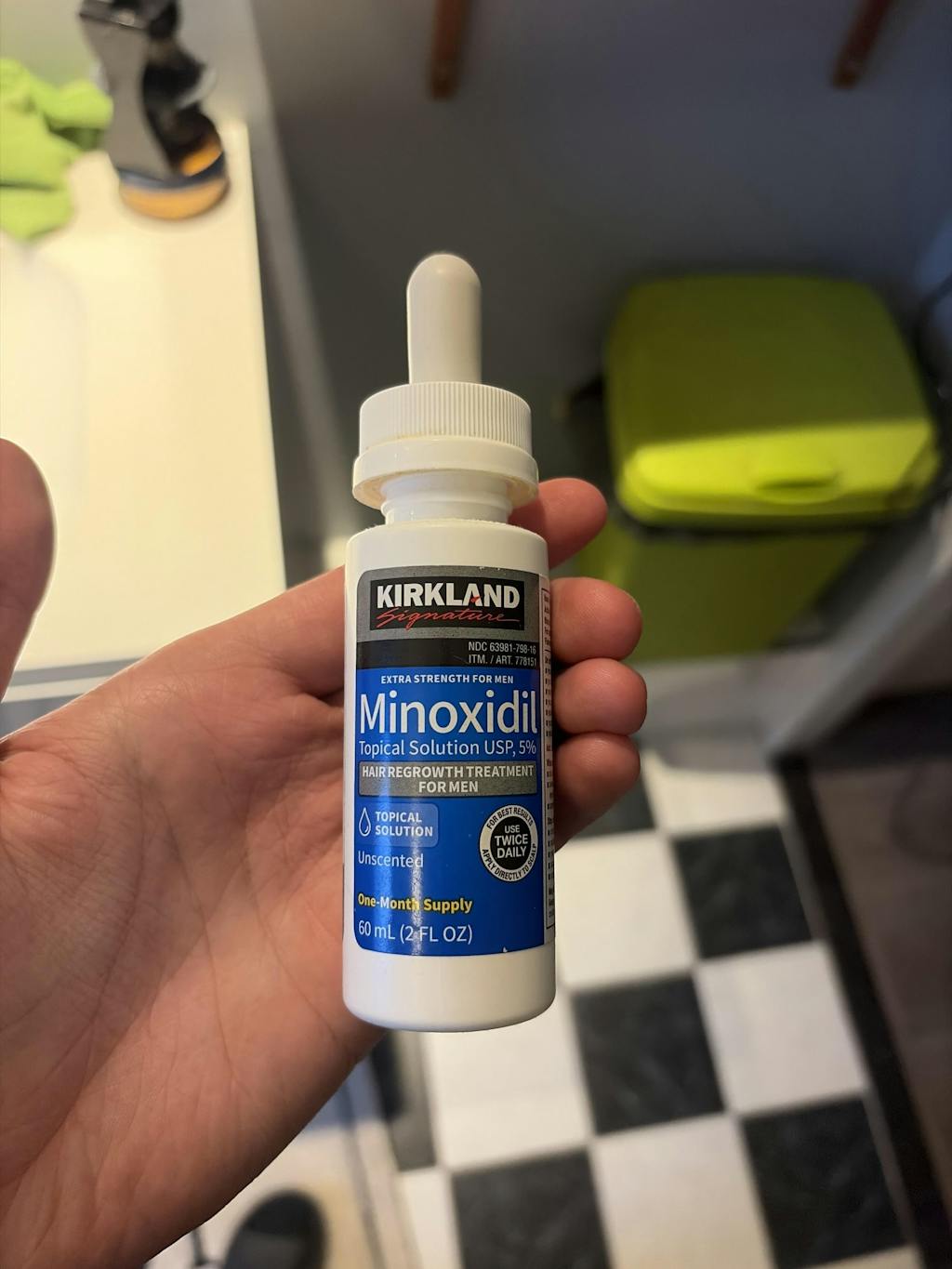 Kirkland 5% voor mannen is een haarverzorgingslotion die speciaal is ontwikkeld voor mannen met dunner wordend haar of een minder volle baardgroei. Het product is eenvoudig aan te brengen met de meegeleverde applicator en ontworpen voor dagelijks gebruik.